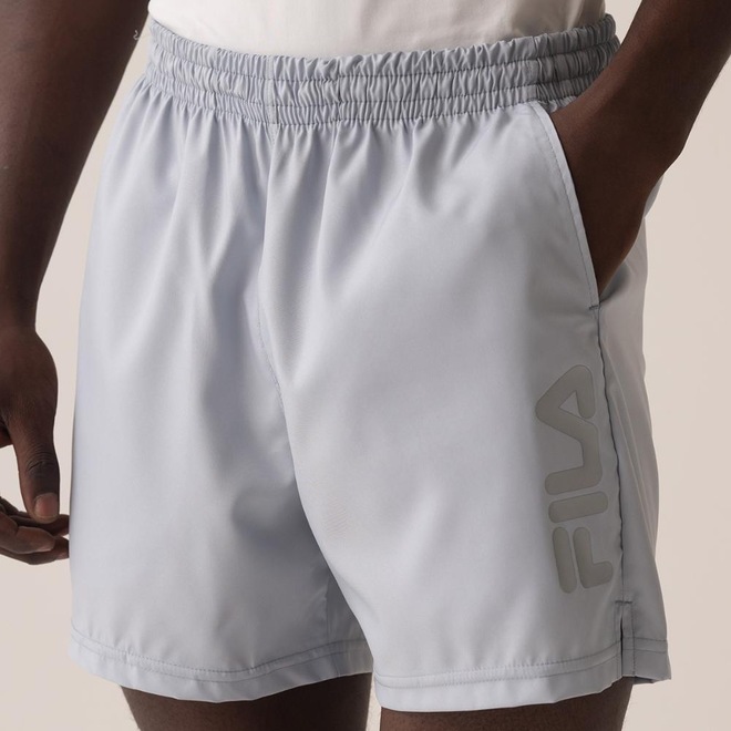 Short masculino confeccionado em tecido plano de poliéster. Modelagem regular. Possui bolsos laterais, cós tombado, cordão de ajuste com amarração interna, aberturas laterais na barra para maior liberdade de movimentos e logo FILA Linear vertical em termo aplicado na lateral esquerda próximo à barra. Comprimento total: 40 cm. Entrepernas: 13 cm.ref: M17M6U