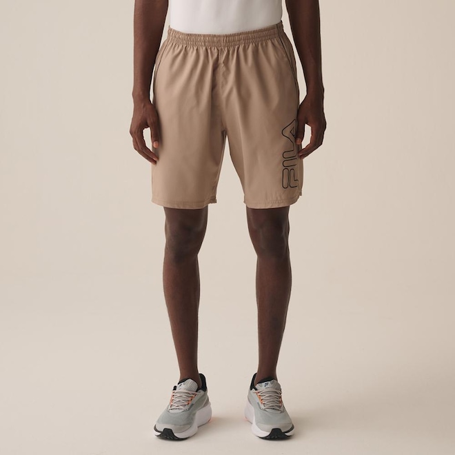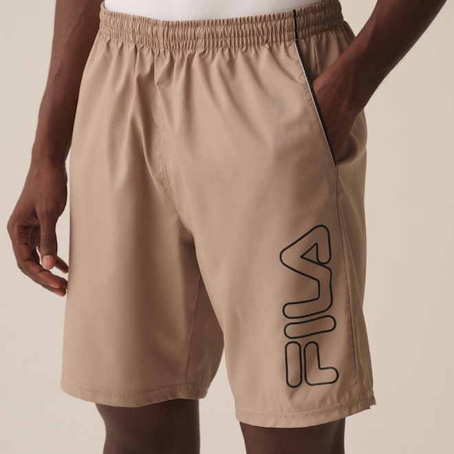 Bermuda masculina confeccionada em tecido plano de poliéster. Modelagem regular. Possui cós tombado com elástico e amarração interna com cordão de ajuste, bolsos laterais com acabamento de vivos contrastantes e maxi logo Fila Letter Outline vertical estampado na lateral esquerda próximo à barra. Comprimento total: 48 cm. | Entrepernas: 19 cm.ref: M17LQI