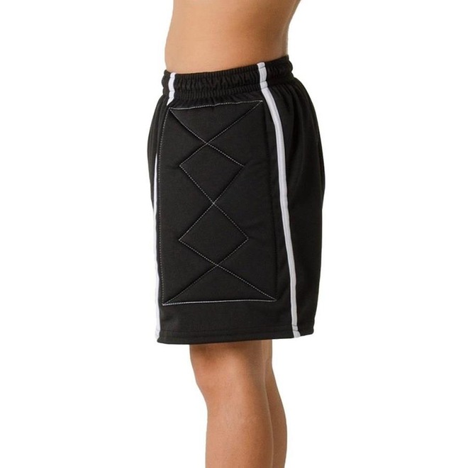 Confeccionada em 100% poliéster, o material é resistente e confortável, possui reforço acolchoado nas laterais das coxas, para promover ao goleiro proteção em suas defesas.