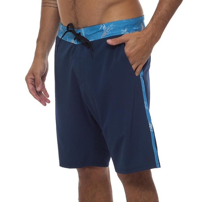 Bermuda Hurley Beach Side (hibrida), tecido com elastano, cós e tape lateral sublimado, bolsos laterais, heat transfer Icon na barra, bolso traseiro com lapela sublimada e etiquetas personalizadas.