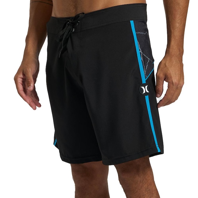 Bermuda Hurley com tapes nas laterais, patch ICON na lateral, recorte traseiro sublimado, bolso traseiro com etiqueta ONE&ONLY e etiquetas personalizadas.
