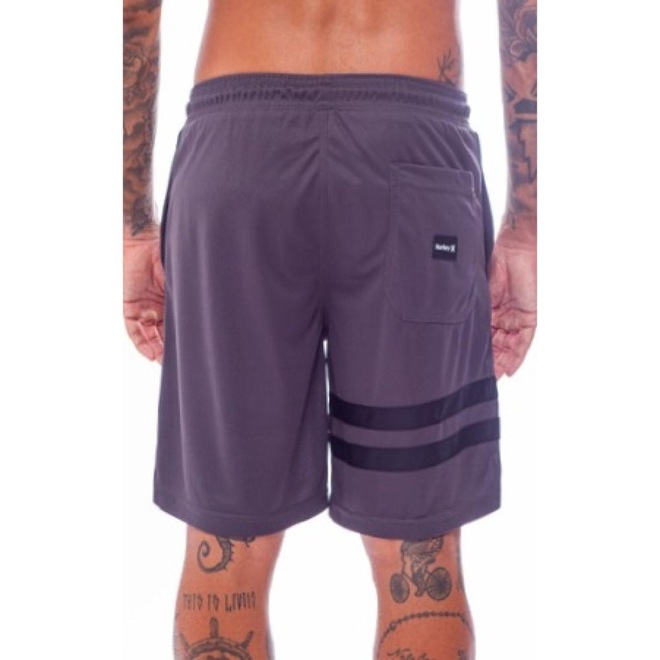 Bermuda Hurley em elástico, cós com cordão para melhor ajuste, bolsos nas laterais, tapes nas laterais, aplique Block Party na perna, transfer refletivo LAYERS na barra e bolso traseiro com etiqueta ONE&ONLY.