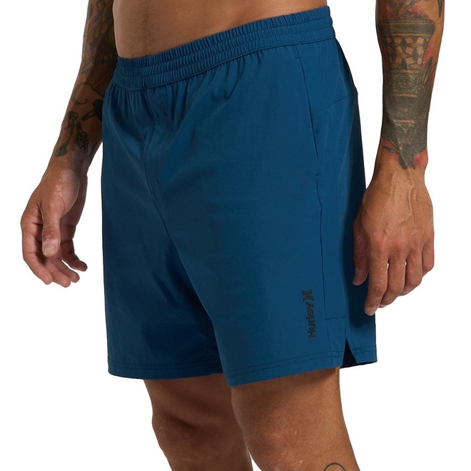 - Sobre o produto - BERMUDA HURLEY VOLLEY ALPHA - Bermuda Hurley com bolsos nas laterais, cós com cordão para melhor ajuste, transfers relevo ONE&ONLY na lateral, abertura lateral na barra e bolso traseiro embutido com zíper. - Características Principais: - Composição: 90% Poliamida e 10% Elastano.