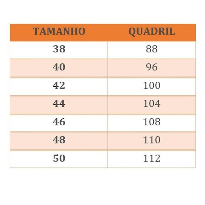 Tamanhos: 38 a 50
