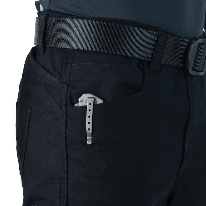 Ela possui cós anatômico, passantes reforçados e costuras triplas nas áreas de maior atrito, além de bolsos cargos inclinados, facilitando o acesso aos itens do seu EDC durante ações de maior movimentação corporal.