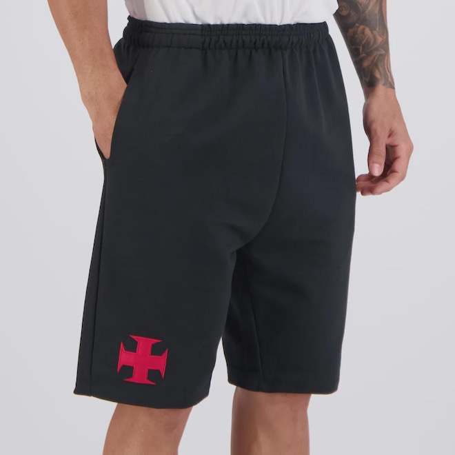Composição: 50% Algodão e 50% PoliésterBolsos: Dois bolsos frontais, sem zíper, e um traseiro com fecho fixadoCor predominante: PretaAjuste: Elástico e cordãoOrigem: NacionalEscudo: BordadoGênero: Masculino Clube: VascoModelagem: RegularDimensões aproximadas (A x L):P: 52 x 40 cmM: 54 x 44 cmG: 55 x 45 cmGG: 57 x 45 cmEG: 59 x 47 cm