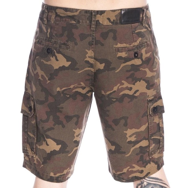 Bermuda cargo de Sarja em tecido estampado com lavagem estonada, possui bolsos frontais, laterais e traseiros, passantes de cinto no cós e fechamento por zíper e botão.(Composição 100% Algodão)