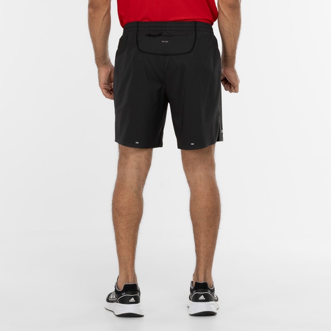 A bermuda masculina tem cós com cordão e elástico, já sua cintura média e tem detalhes refletivos.
