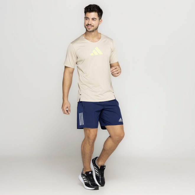 Indicada para o esporte, a Bermuda Masculina adidas Own The Run é feita com poliéster reciclado como contribuição da marca pela sustentabilidade com respirabilidade AEROREADY, tecnologia que afasta o suor e mantém o corpo seco e confortável, mesmo sob esforço.