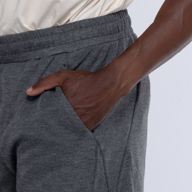 O cós elástico com ajuste por cordão garante um ajuste personalizado e seguro, proporcionando liberdade de movimento durante os exercícios.