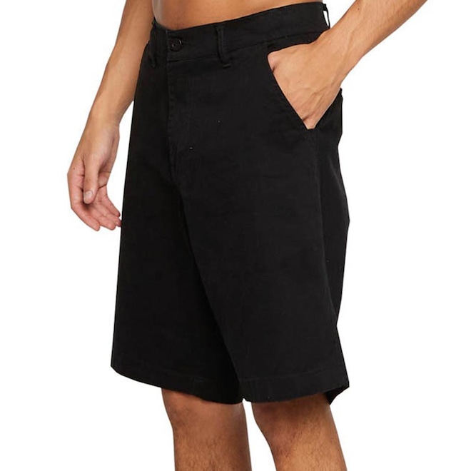 Bermuda Element feita em modelagem straight, bolsos faca com mini bolso embutido na parte da frente,, pence e bolsos embutidos na parte de trás, fecho de botão e etiquetas personalizadas.