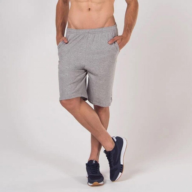 Bermuda de moletinho, modelagem regular com gancho alongado e bolsos laterais.