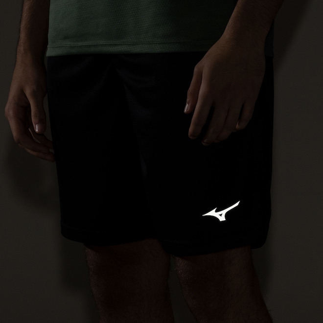 A bermuda Mizuno tem cintura média e dois bolsos laterais para guardar os objetos perto das mãos, além disso tem detalhes refletivos.