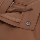 O cós tem cordão, sua cintura é média e há 5 bolsos espalhados para guardar os objetos pessoais.