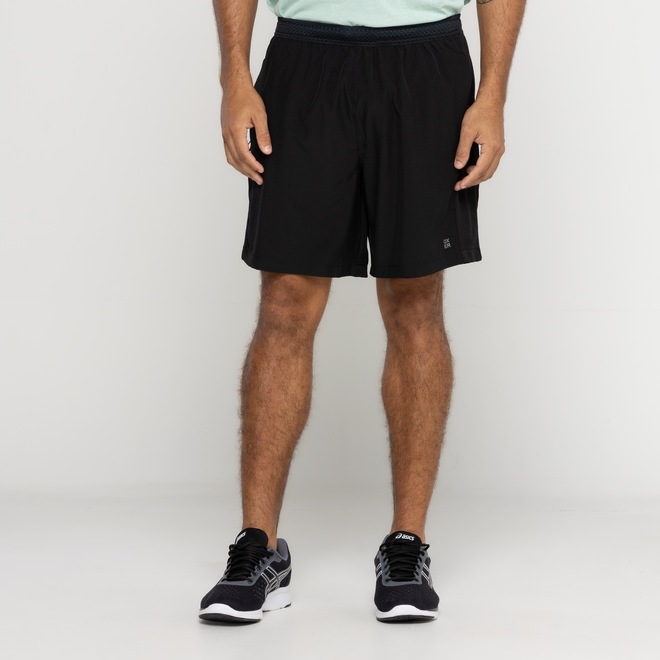 O cós é elástico com tramas abertas para mais absorção do suor e cordão para ajuste firme.