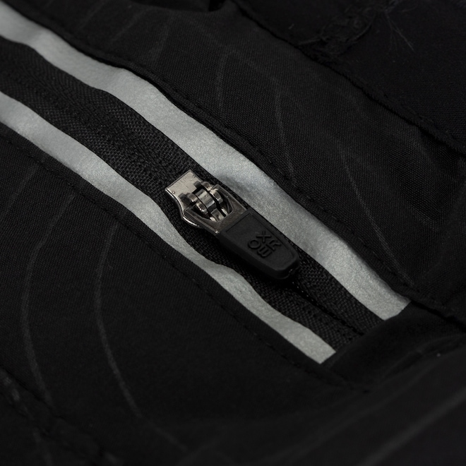 Seu cós elástico é ajustado por cordão e conta ainda com três práticos bolsos, sendo o traseiro com detalhe refletivo e fechamento por zíper para mais segurança ao guardar pequenos itens.