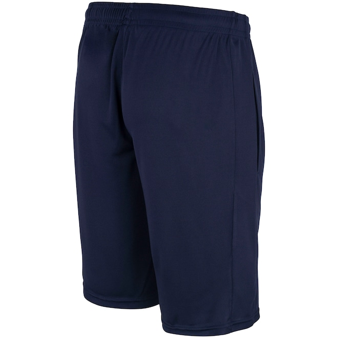 A bermuda masculina conta com cós cordão e elástico, com cintura média.