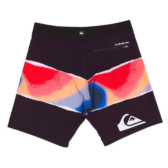 Bermuda QuikSilver feita em tecido 2Way, com elasticidade para 2 lados e repelente à água, cós duplo do contrastante próprio tecido, cordão chato especial, bolso invertido traseiro com aplicação de transfer e fechamento em zíper anti corrosivo, etiqueta aplicada na perna esquerda e tecido telado no interno do bolso com aplicação de elástico para chaves.