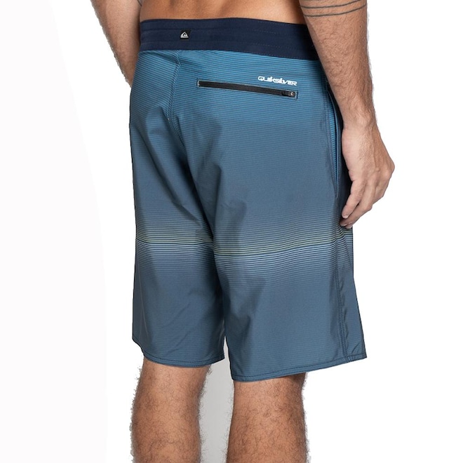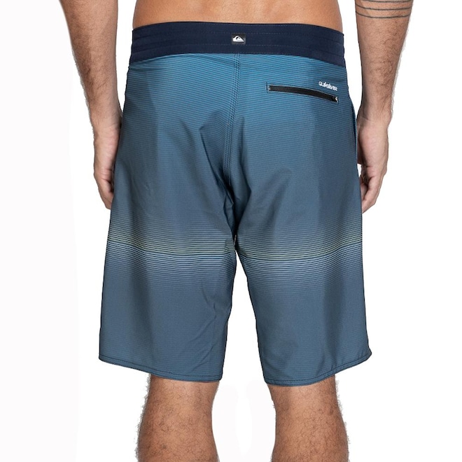 Bermuda QuikSilver feita em tecido 2Way, elasticidade para os dois lados, cós duplo do prórprio tecido, cordão chato especial, bolso traseiro com fechamento em zíper invertido anti corrosivo, etiqueta aplicada na perna esquerda e tecido telado no interno do bolso com aplicação de elástico para chaves.