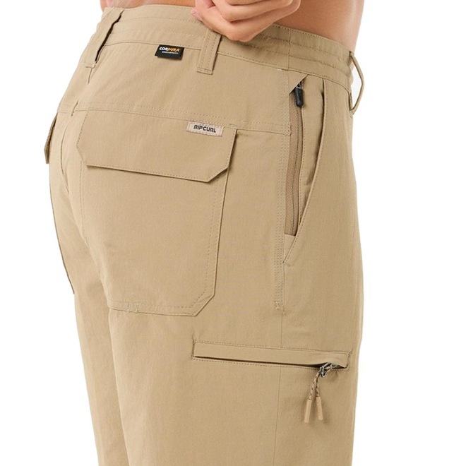 Bermuda Rip Curl feita com tecido em Cordura poliamida e elastano, tratamento DWR repelente a água, logo em silicone, cordão interno, bolso com zíper e forro em tela mesh e standard fit.
