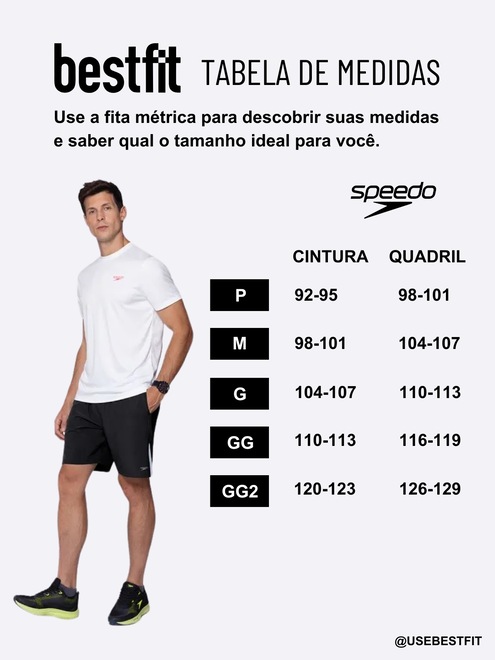 Mais liberdade, segurança e funcionalidade para sua corrida. A Bermuda Speedo Active Running é feita com microfibra leve e respirável, possui três bolsos com zíper para praticidade, além de detalhes refletivos que aumentam sua visibilidade. A cintura com cordão e elástico garante o ajuste ideal ao corpo. Performance sem distrações, garanta a sua e corra com conforto e estilo! Especificações: Dois bolsos laterais e um traseiro com zíper. Microfibra leve e confortável. Detalhe refletivo nas costas. Cordão de ajuste interno. Elástico na cintura. Logo refletivo na parte frontal. Benefícios: Mais praticidade no dia a dia e no treino: guarde com segurança pequenos itens nos bolsos com zíper, evitando incômodos durante a movimentação. Conforto total: tecido leve proporciona respirabilidade e bem-estar mesmo em treinos mais intensos ou em dias quentes. Mais segurança para treinos noturnos: os detalhes refletivos aumentam a visibilidade em ambientes com pouca luz. Ajuste perfeito: cintura com elástico e cordão garante estabilidade e conforto, sem apertar ou escorregar. Composição: 100% Poliéster. Cuidados e Conservação: Lavar à mão ou em ciclo suave. Não usar alvejante. Secar à sombra. Não passar sobre os detalhes refletivos. Evitar torção da peça. Não guarde a peça úmida.