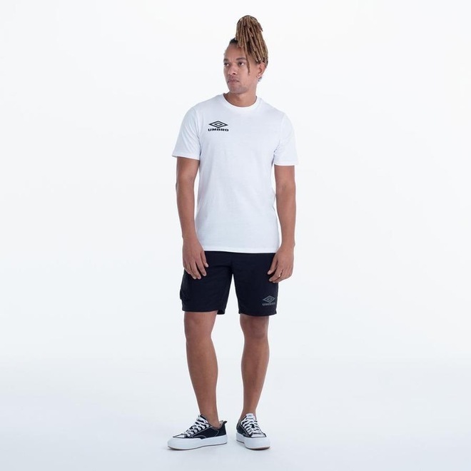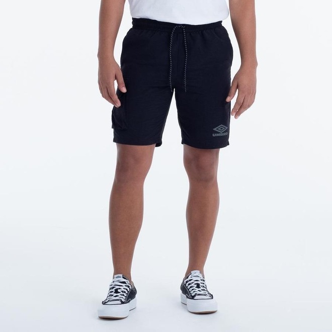 A Bermuda Preta Masculina Umbro College D Merge traz bolsos laterais, cós com elástico interno e cordão ajustável, bolso cargo e logo personalizado. Confeccionado em algodão com poliéster, o modelo proporciona conforto e estilo ao seu look casual. PRETOref: M103E7