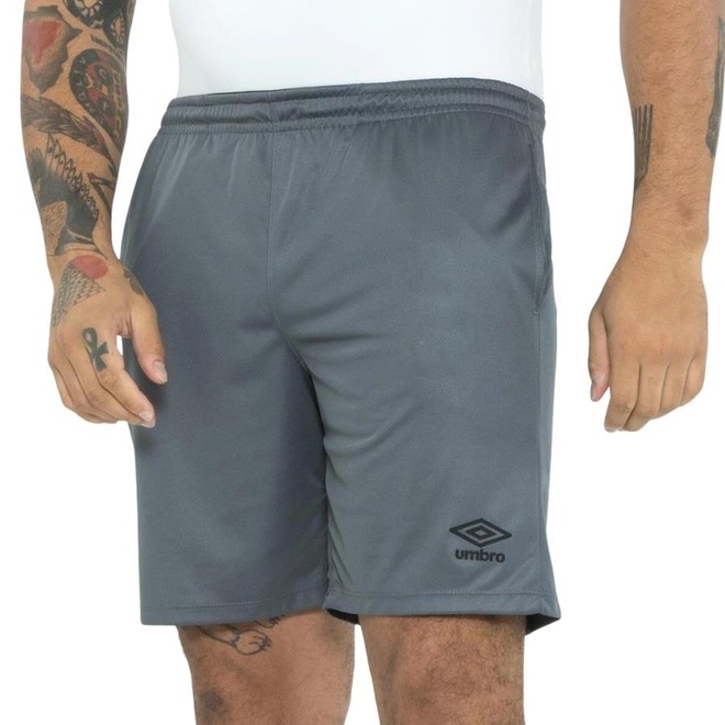 Bermuda masculina confeccionada em 100% poliéster. Modelagem mais curta com comprimento total de 42 cm. Possui cós tombado com elástico e cordão de ajuste, elástico Umbro personalizado aplicado na parte interna do cós, costura lateral deslocada para frente, bolsos laterais e logo Umbro em termotransfer com relevo aplicado na parte frontal esquerda próximo à barra.