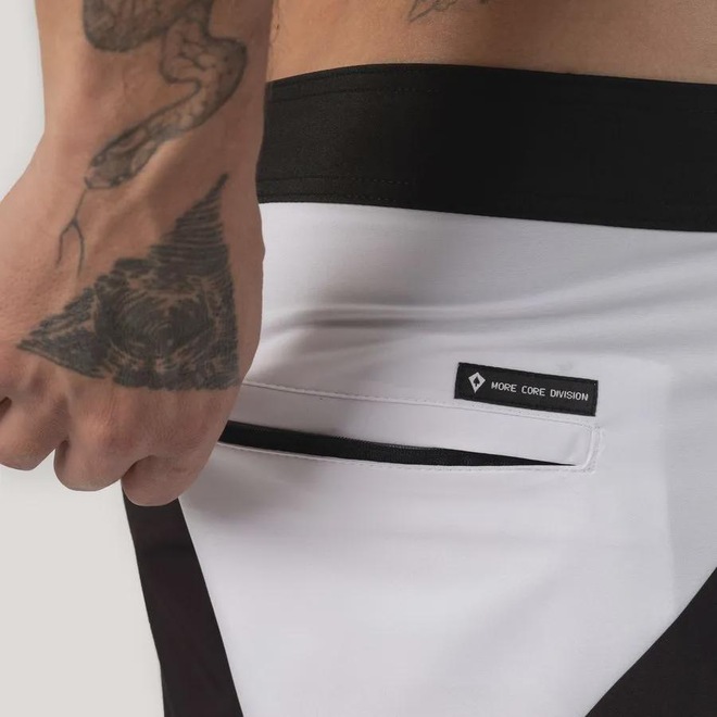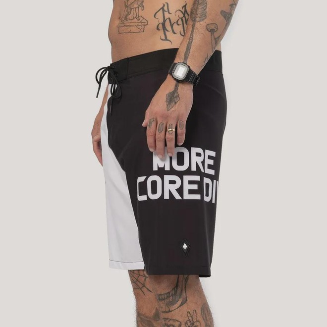 · Estampa na perna lateral esquerda logotipo MORE CORE DIV.