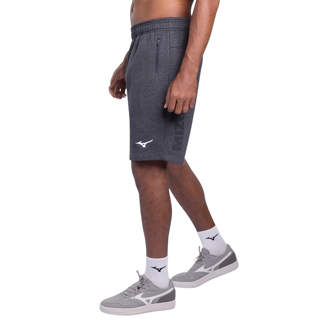 A bermuda masculina Mizuno Moletom é confeccionada em malha de algodão macia ao toque da pele. Possui bolsos laterais e ajuste em cadarço personalizado. Logo Letering Mizuno recebe destaque em silk siliconado.