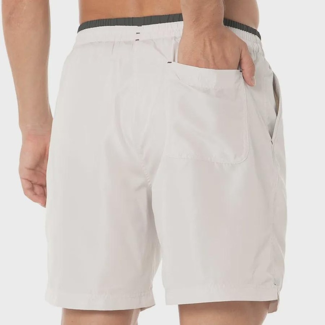 Bermuda feita com tecido extremamente leve e confortável, com bolsos laterais e cordão interno, sunga interna em mesh e forro do bolso frontal em tecido atoalhado. Combinação de cores clássicas. Logo Mizuno bordado