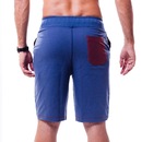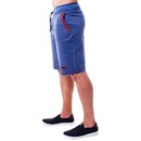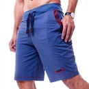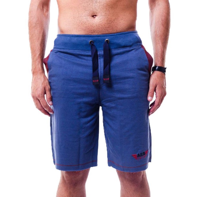Bermuda Moletom AES 1975 Azul, com bolso de outra cor, cadarço personalizado, elástico ajustável e arrebite, perfeita para o dia a dia.