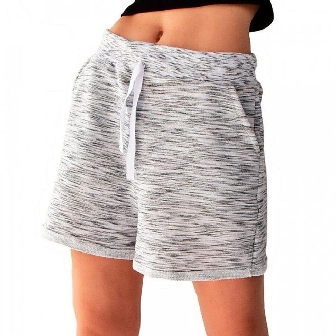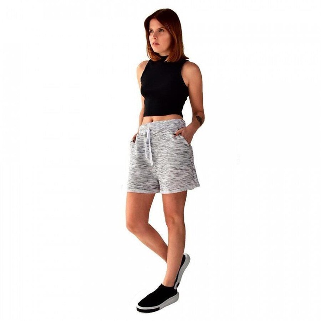 Bolsos laterais e cordão de ajuste, com acabamentos em ribana e barra.