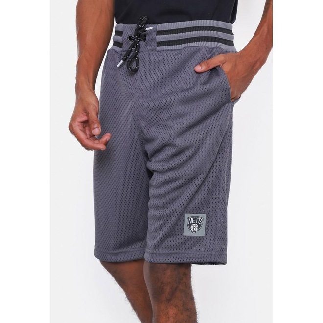 Bermuda Nba Sintética Team Logo Brooklyn Nets Niquel - Nba - Masculino