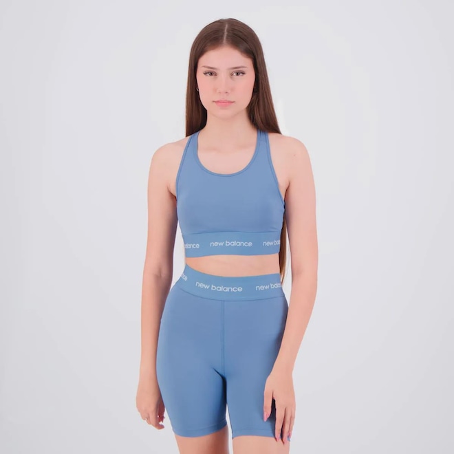 Tecnologia NB DRY: Tecnologia que garante secagem rápida e absorção de suor. Composição: 86% Poliéster e 14% Elastano Cor predominante: Azul Ajuste: Elástico Bolsos: Não possui Indicado para: Treino Gênero: Feminino Origem: Importada Logo: Estampada Dimensões aproximadas (A x L): P: 38 x 30 cm M: 40 x 32 cm G: 42 x 34 cm GG: 44 x 36 cm