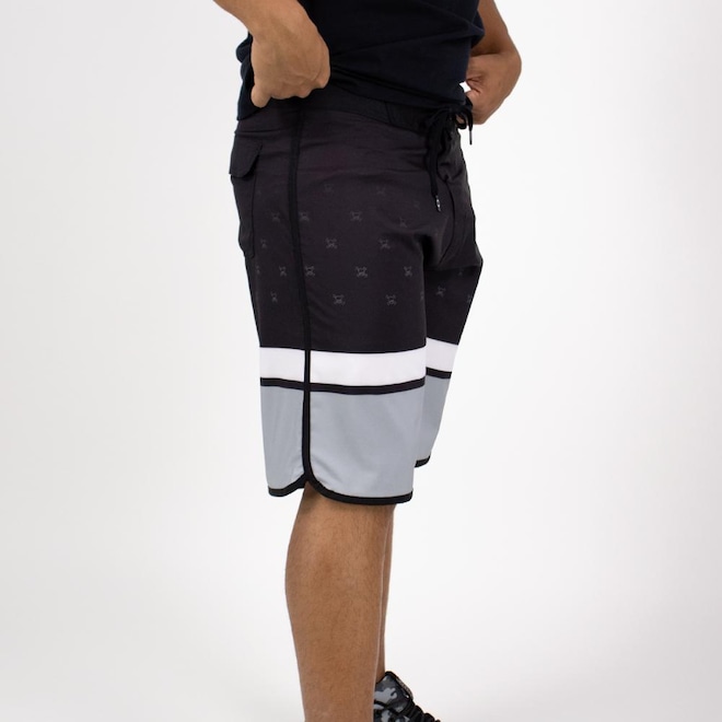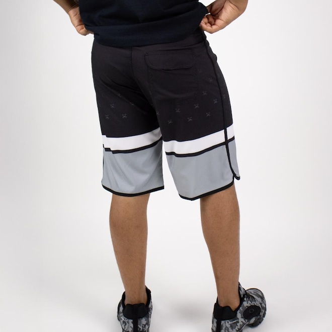 O modelo ainda conta com vista funcional com Lycra interna e acabamento com pesponto duplo, reforçando a durabilidade e o caimento técnico do boardshort.