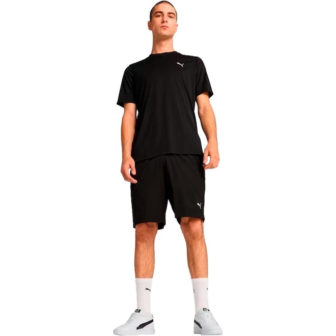 A Bermuda Puma Woven Masculina é a escolha perfeita para quem valoriza conforto e estilo em qualquer situação. Este shorts com ajuste regular proporciona um ajuste excelente, permitindo que você se mova livremente e com confiança. Uma das principais vantagens desses shorts é a tecnologia Dycell, que efetivamente afasta a umidade do corpo. Isso garante que você fique seco e confortável, mesmo durante os treinos mais intensos. O forro de malha adiciona respirabilidade extra, o que é especialmente importante em dias quentes. Você desfrutará de uma sensação de leveza e frescor, não importa o quão ativo seja seu dia. Garanta já a sua! Comprimento acima do joelho;100% poliéster;Forro de malha.