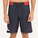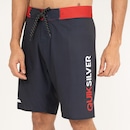 Bermuda QuikSilver feita em tecido 2Way, elasticidade para os dois lados e repelente à água, bolsos embutidos laterais, cós duplo do próprio tecido, cordão chato especial, bolso lateral com fechamento em zíper invertido anti corrosivo, etiqueta aplicada na perna esquerda e tecido telado no interno do bolso com aplicação de elástico para chaves.