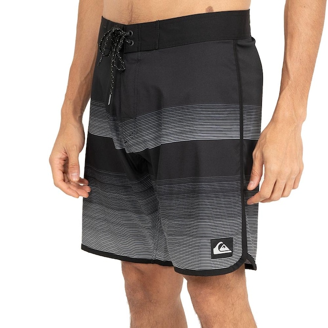 Bermuda QuikSilver feita em tecido 2Way, elasticidade para os dois laods e repelente à água, cós duplo do próprio tecido, cordão chato especial, bolso traseiro com fechamento em zíper invertido anti corrosivo, etiqueta aplicada na perna esquerda e tecido telado no interno do bolso com aplicação de elástico para chaves.