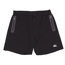 Bermuda QuikSilver feita em tecido com 2Way, elasticidade para 2 lados e repelente à água, cós de elástico total com ajuste em cordão externo, cordão chato especial, bolsos laterais fusionados com fechamento em zíper anti corrosivo, bolso traseiro chapado com lapela, aplicação de elástico para chaves e etiqueta personalizada.