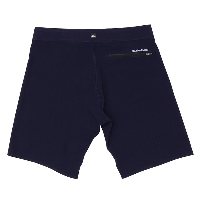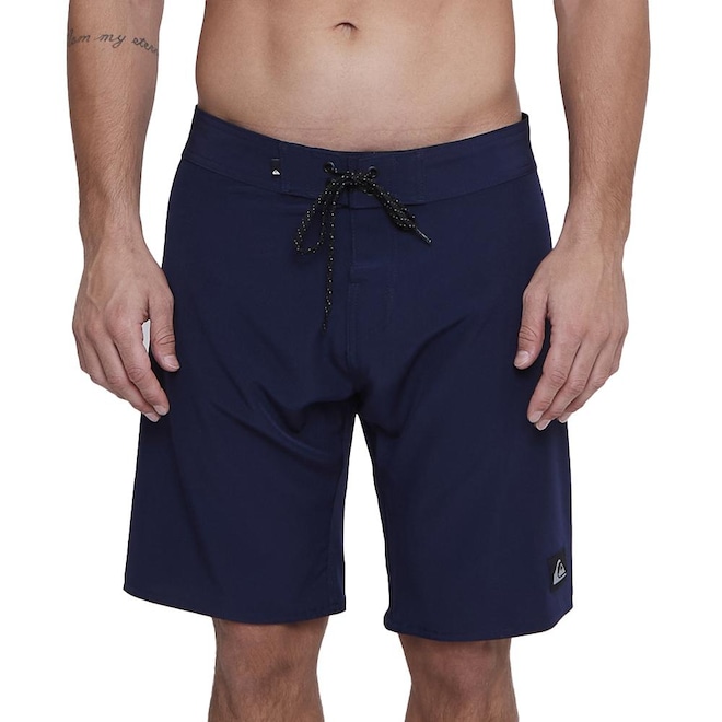 Bermuda QuikSilver feita em tecido 2Way, com elasticidade para 2 lados e repelente à água, cós duplo do contrastante próprio tecido, cordão chato especial, bolso invertido traseiro com aplicação de transfer e fechamento em zíper anti corrosivo, etiqueta aplicada na perna esquerda e tecido telado no interno do bolso com aplicação de elástico para chaves.