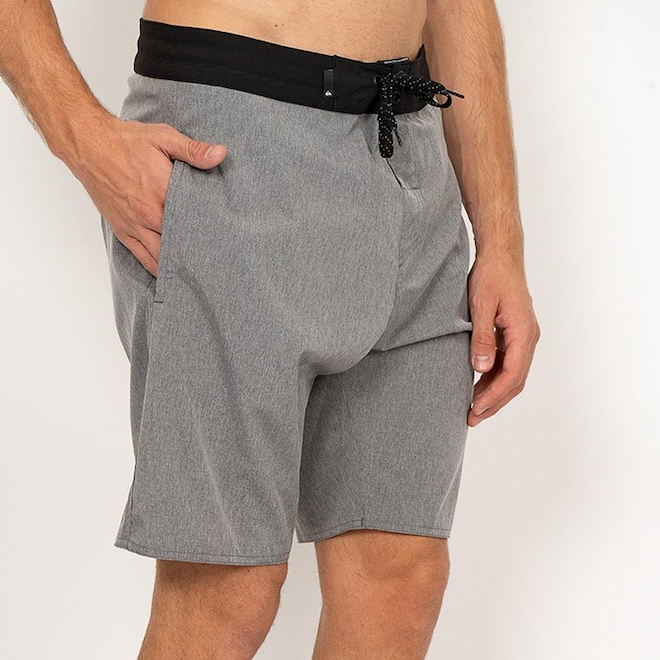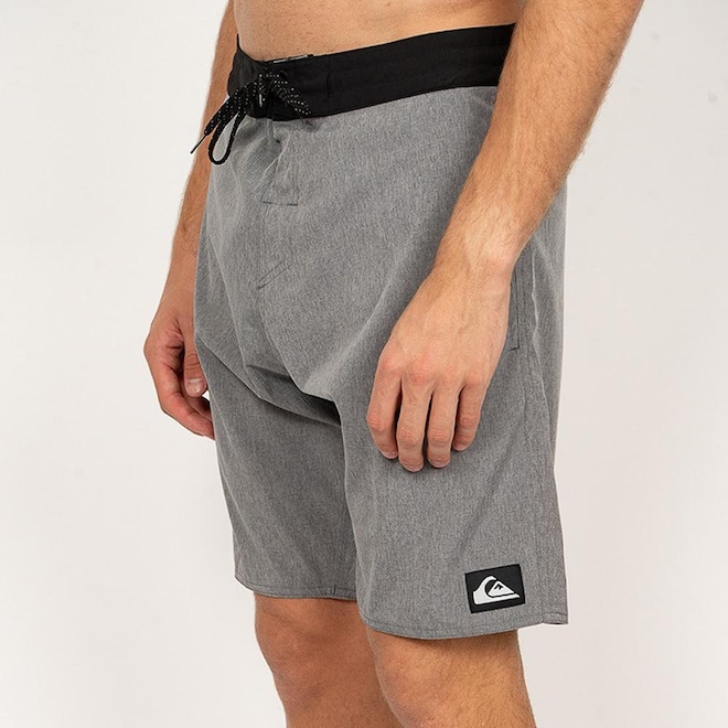 Bermuda QuikSilver feita em tecido 2Way, elasticidade para os dois lados e repelente à água, bolsos embutidos laterais, cós duplo do próprio tecido, cordão chato especial, bolso traseiro com fechamento em zíper invertido anti corrosivo, etiqueta aplicada na perna esquerda e tecido telado no interno do bolso com aplicação de elástico para chaves.