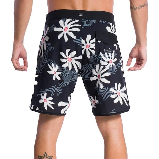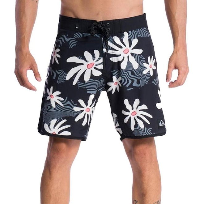 Bermuda Quiksilver boarshorts regular scallop, tecido de poliéster com elastano estampado, tecido com 4Way, elasticidade para 4 lados, cós duplo do contrastante próprio tecido, cordão chato especial, bolso chapado traseiro com aplicação de etiqueta, lapela e fita dupla aderente, etiqueta aplicada na perna esquerda, tecido telado no interno do bolso com aplicação de elástico para chaves.