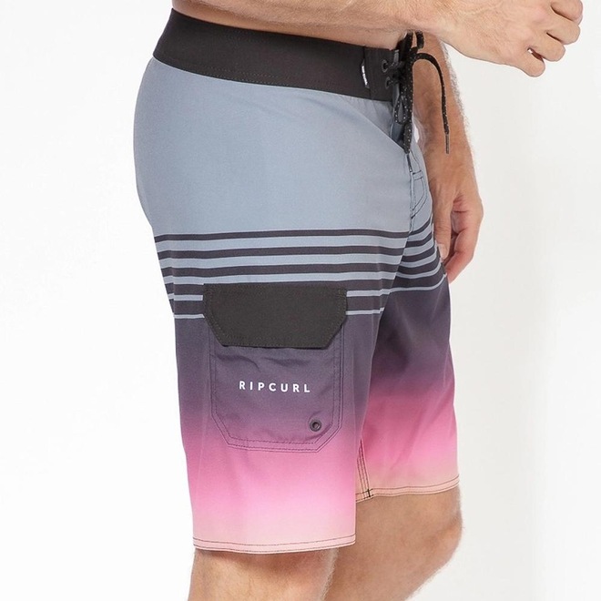 Bermuda Rip Curl em poliéster com elastano, secagem rápida hidrofóbica, bolso lateral chapado com lapela e velcro, 20" e estampa na barra e no bolso.
