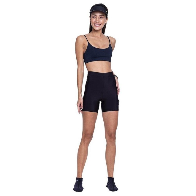 ? A Bermuda Rola Moça Beach Tennis Feminina apresenta cintura alta com elástico interno. Bolso invertido do lado esquerdo para colocar a bolinha de tênis. Aplicação do símbolo RM na perna. O tecido Beach Sublime é feito com uma super microfibra de poliéster.É macio, com excelente elasticidade e conforto. Possui microcápsulas de Aloe Vera que são liberadas durante o uso hidratando a pele. Possui proteção UV50+ e é antibacteriano evitando odores e garantindo a segurança. Uma peça perfeita para ser usada por baixo dos vestidos de Beach Tennis.