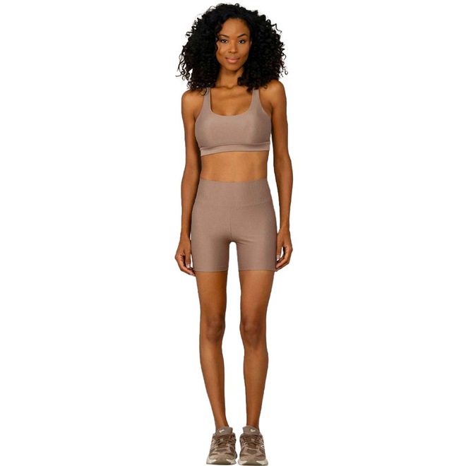Run More Glow Essencial Feminina: Eleve seu visual fitness com a bermuda feminina cintura alta com brilho, que alia funcionalidade, beleza e performance em uma só peça.