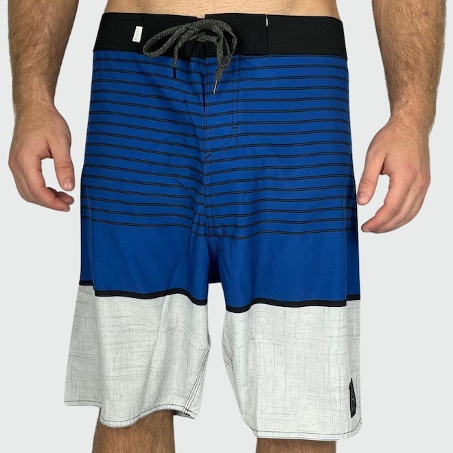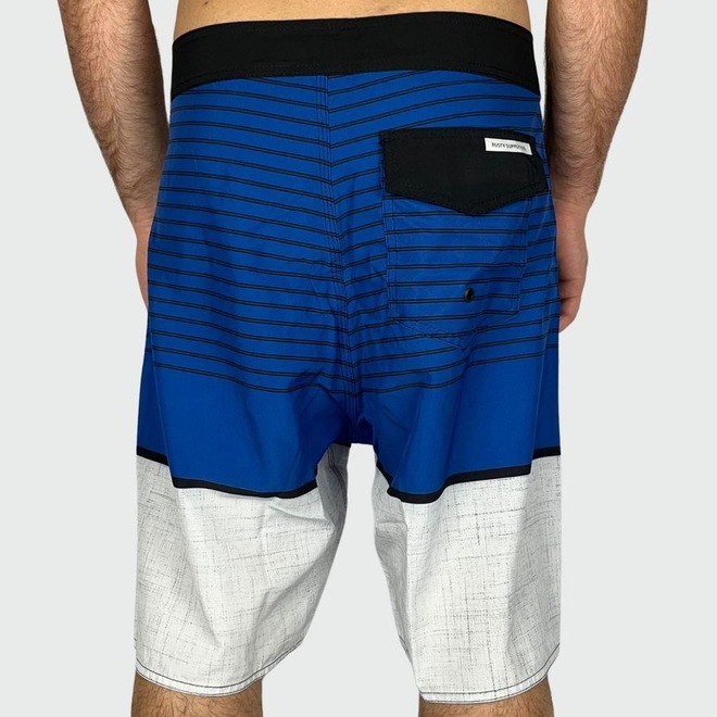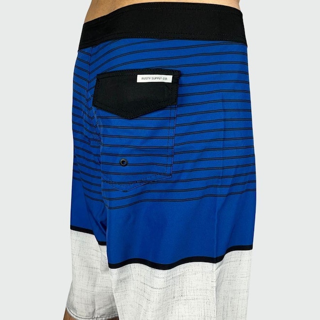 Boardshort Rusty Season. Possui modelagem regular, cós contrastante com ajuste de cordão, bolso traseiro com lapela contrastante, ilhós personalizado e etiquetas Rusty. Confeccionado com tecido 4 Way Stretch Estampado.