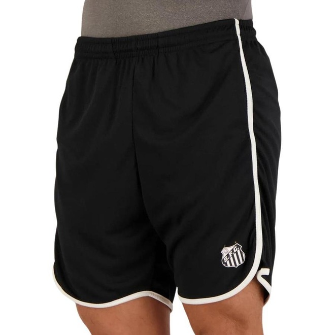 Para os torcedores apaixonados, a bermuda do Santos, modelo agility, é ideal para quem gosta de treinar com conforto e liberdade. Confeccionada em poliéster, a peça traz design em preto com detalhes no branco e exibe o escudo do clube estampado na perna.
