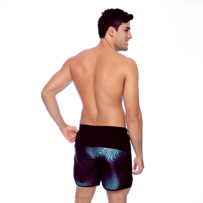 Microfibra Estampada com Sublimação: O shorts masculino apresenta uma estampa vibrante e durável, aplicada com técnica de sublimação, e o logo em transfer refletivo para maior segurança em ambientes com pouca luz.