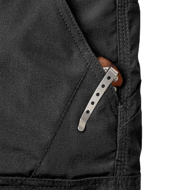 -Bolso frontal com reforço para canivete.