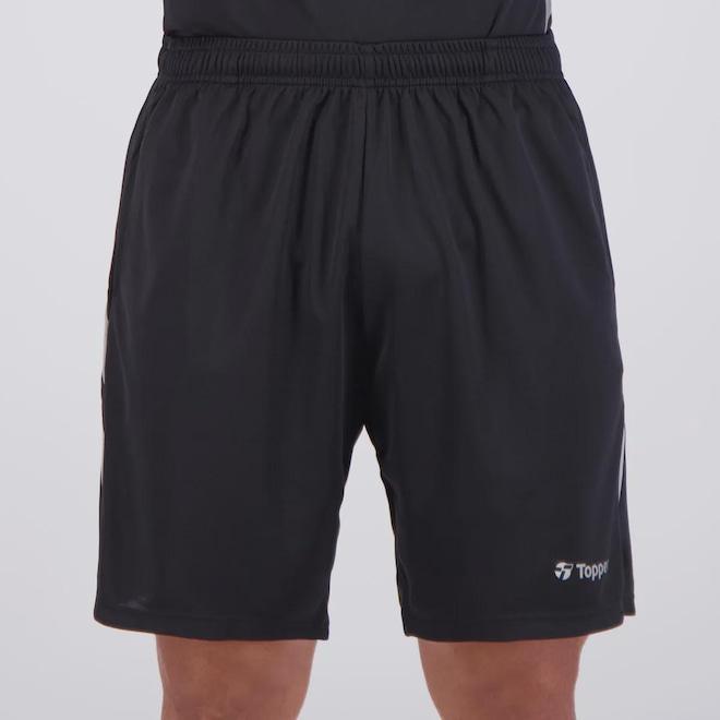 Composição corpo: 100% PoliésterAjuste: Elástico e cordão no cósBolsos: Dois frontais, sem zíperCor predominante: PretaIndicado para: TreinoGênero: MasculinoOrigem: NacionalLogo: EstampadaDimensões aproximadas (A x L):P: 43 x 38 cmM: 45 x 40 cmG: 47 x 42 cmGG: 49 x 44 cm